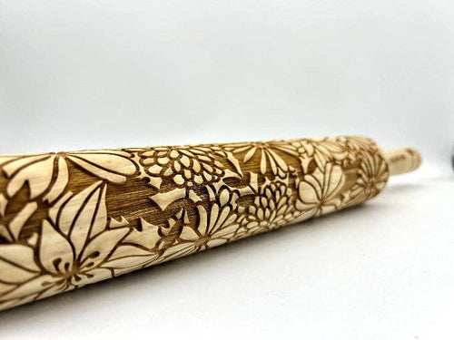 Embossed Bursting Bouquet Rolling Pin –Baking & Pottery